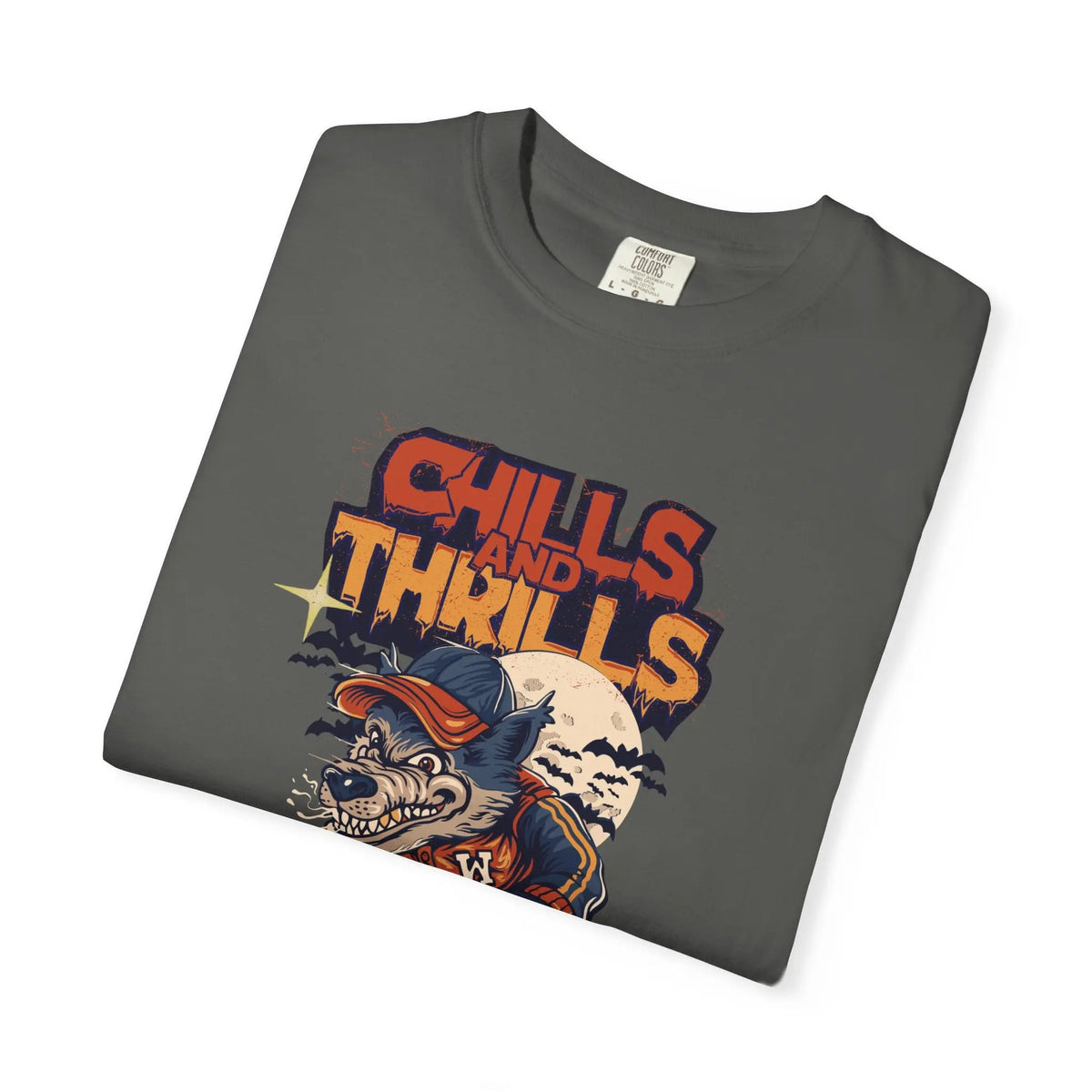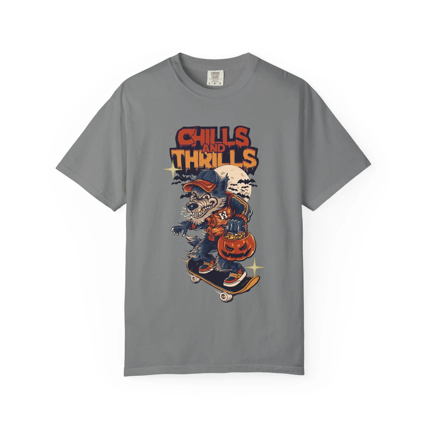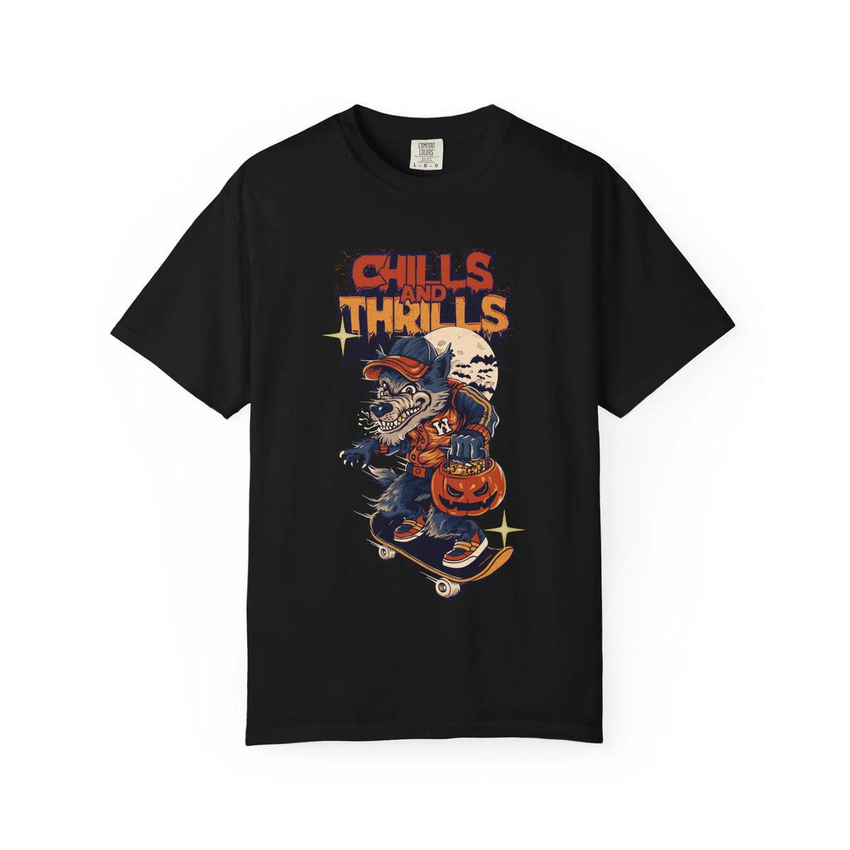 Chill&thrill monster t-shirt graphic tee that exudes a laid-back vibe, perfect for casual days and adding a pop of fun to any outfit. Ideal for those who love quirky designs and want to stand out. Perfect for Halloween, casual Fridays, and everyday wear.